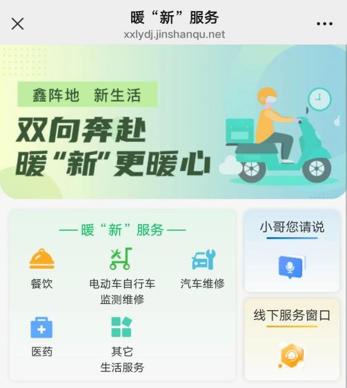 此外,枫泾市场监管所与综合网格还为小哥们提供了暖心服务,增强他们的归属感和职业认同感。辖区内设立了多个“暖心驿站”,供小哥们休憩、理发、优惠就餐。金山区市场监管局还牵头开发了一款名为“暖‘新’服务”的金山区网约配送员线上服务平台,小哥们可通过小程序享受餐饮、医药及车辆维修等服务,解决实际困难。