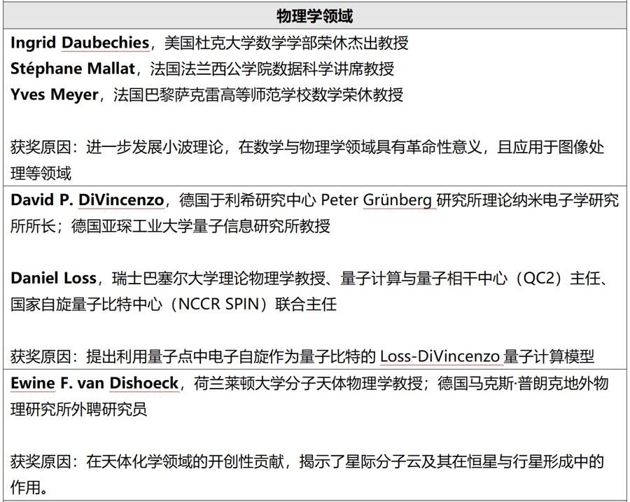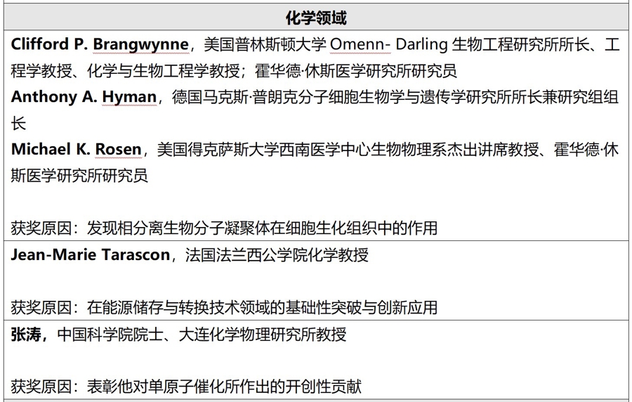 今年,共有来自8个国家的22位杰出学者获此殊荣,其中美国10人,法国3人,德国、日本、瑞士各2人,加拿大、荷兰及首次入选的中国内地各1人。